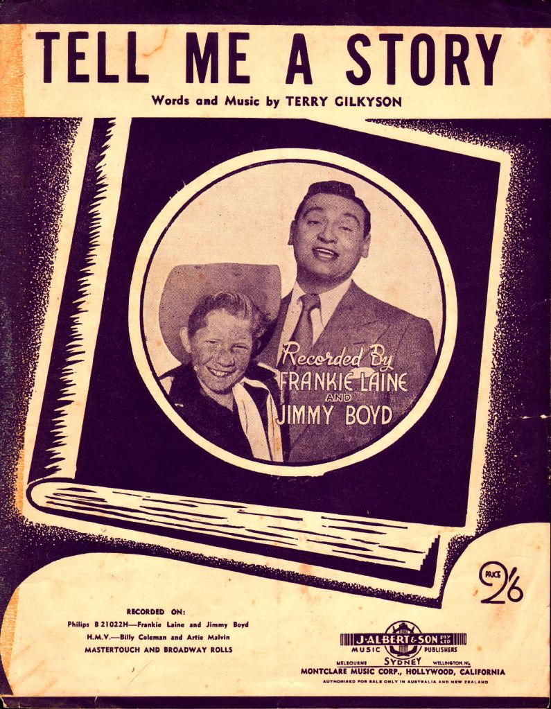 The very first record I played on that old machine was “Tell Me A Story” by Frankie Laine and Jimmy Boyd.I played that record so many times, I think I must have worn a hole in it.